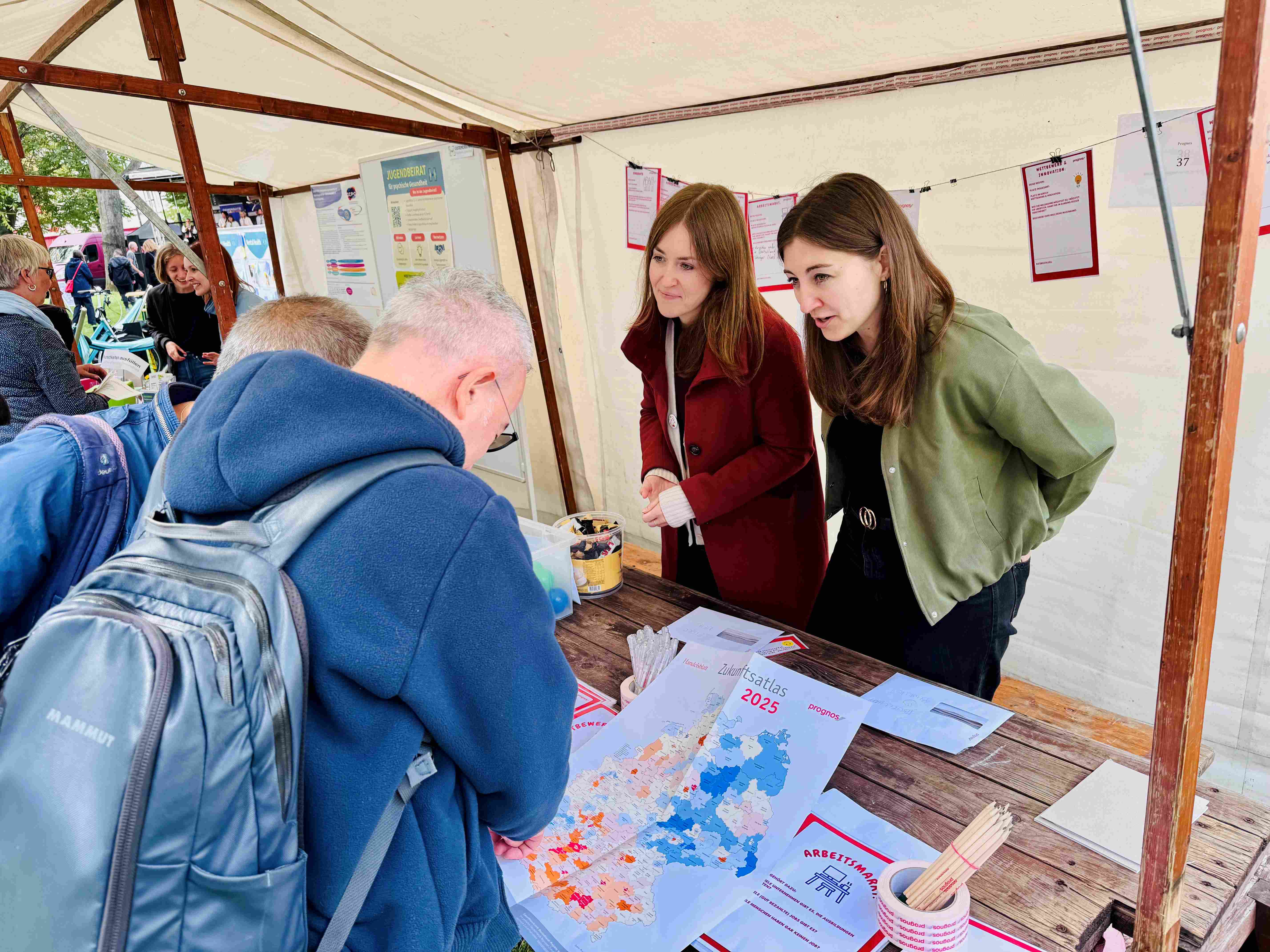 Image Prognos AG Image Prognos AG Image Prognos AG Image Prognos AG Image Prognos AG Image Prognos AG Ob Jutebeutel bedrucken, Memes gestalten, Demokratie-Quizfragen knacken oder VR-Brillen ausprobieren – auf dem Berliner Demokratietag stellten Vereine, Initiativen, NGOs, Schulen und Unternehmen ihre Arbeit vor und kamen mit den Gästen ins Gespräch.Prognos hat das Mitmachfest in Berlin-Kreuzberg mit einem Team aus zehn Freiwilligen tatkräftig unterstützt.Auf Initiative von Projektleiterin und Ideengeberin Felicitas Klemp war das Team am Prognos-eigenen Mitmachstand und half beim Kinderschminken, bei der Betreuung des Infostands oder bei der Einweisung von Fahrzeugen am Geländeeingang.Wir spielten das „Spiel der Regionen“ und diskutierten über die Zukunft in den Heimatorten unserer Gäste, sprachen unter anderem über Wohlstand und soziale Lage, Arbeit, Demografie, Wettbewerb und Innovation. Einen ganzen Sonntag lang haben wir uns mit unserem Zusammenleben beschäftigt – mit Menschen jeden Alters und unterschiedlichster Herkunft.Neben Prognos waren außerdem dabei: Ärzte ohne Grenzen, Capgemini, die Berliner Landeszentrale für Politische Bildung, Omas for Future, das Kinder- und Jugendparlament Neukölln, Zweitzeugen, das mobile Bürgeramt, die Stiftung Grundbildung Berlin und viele mehr. Haben Sie Fragen? Ihr Kontakt bei Prognos Felicitas Klemp Projektleiterin Profil ansehen
